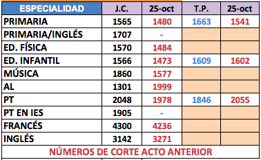 En las especialidades de AL y PT en IES (0597PS) se han adjudicado vacantes por detrás del nº de corte pero como son itinerantes, no son obligatorias y por eso no son el corte de esas especialidades.