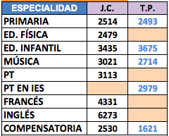 Acto de adjudicación de interinos Primaria del 16 mayo