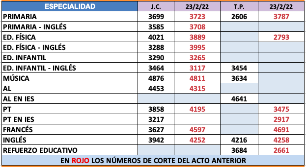 Acto de adjudicación de interinos de Primaria del 1 de marzo