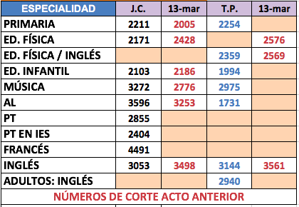 Acto de adjudicación de interinos de Secundaria del 14 de octubre