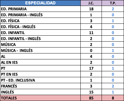 Acto de adjudicación de interinos de Primaria del 10 de mayo
