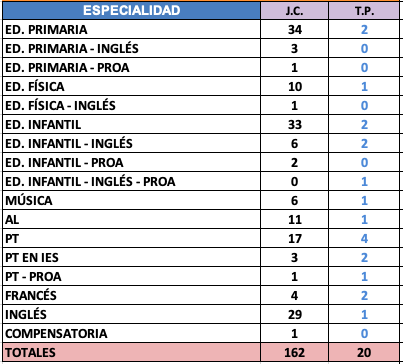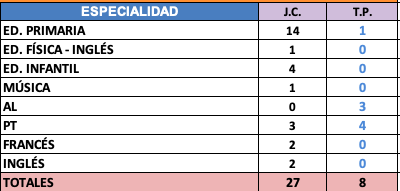 Acto de adjudicación de interinos de Primaria del 11 de enero