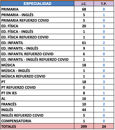 Acto de adjudicación de interinos de Primaria del 12 de enero