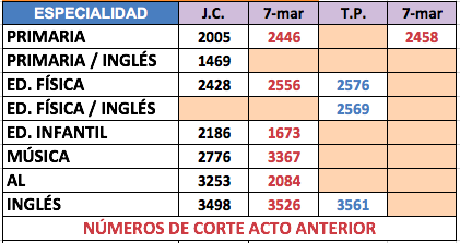 Acto de adjudicación de interinos de Primaria del 13 de marzo