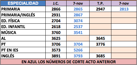 Acto de adjudicación de interinos de Primaria del 13 de noviembre