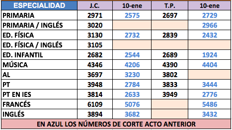 Acto de adjudicación de interinos de Primaria del 15 de enero