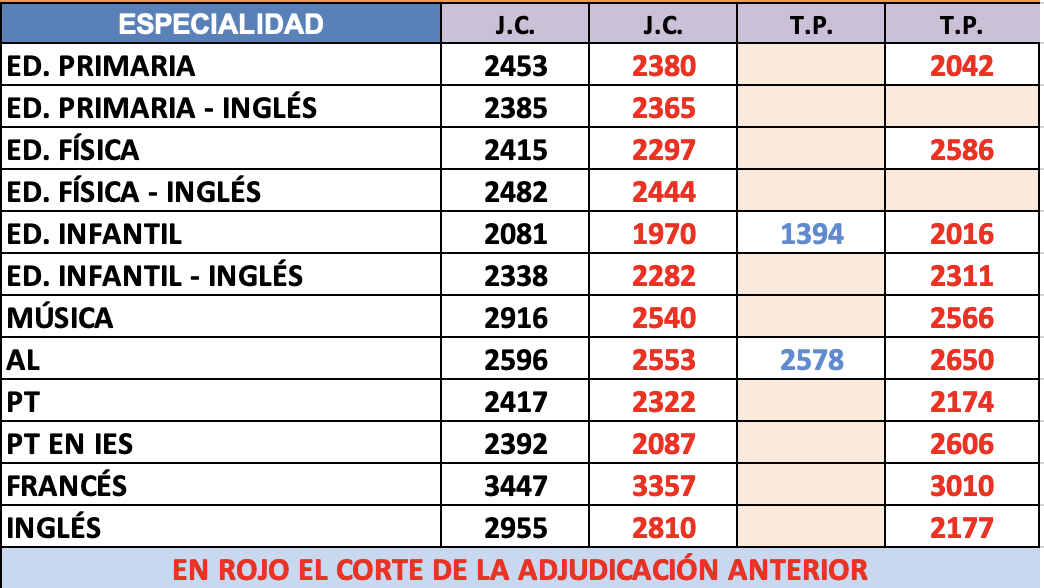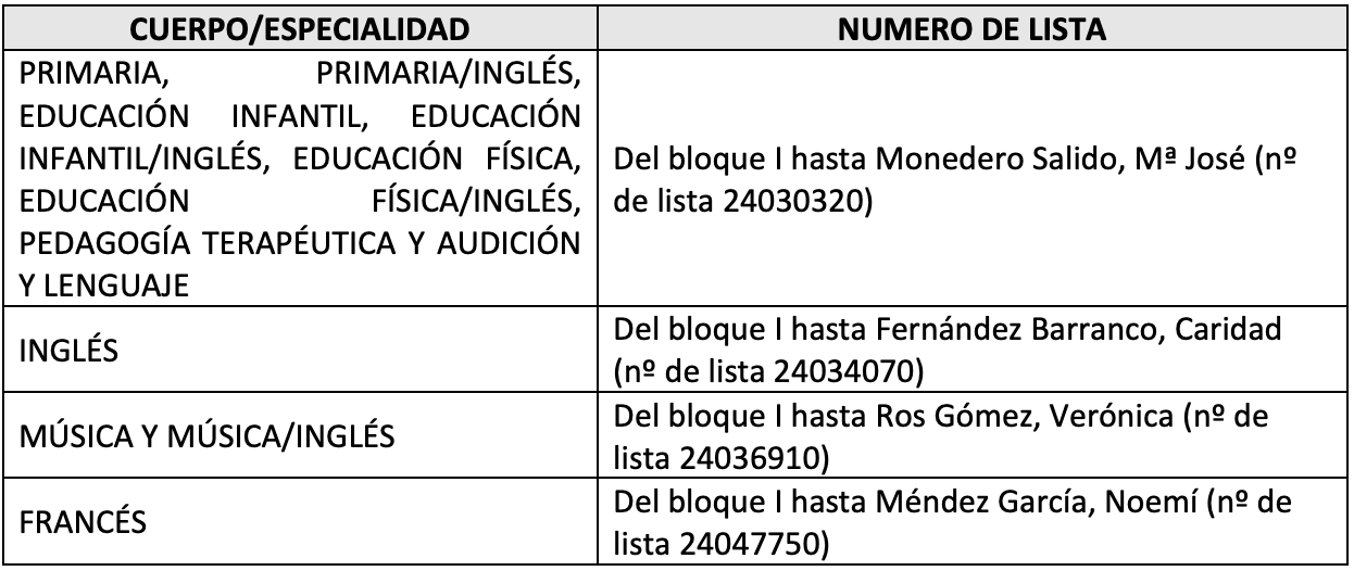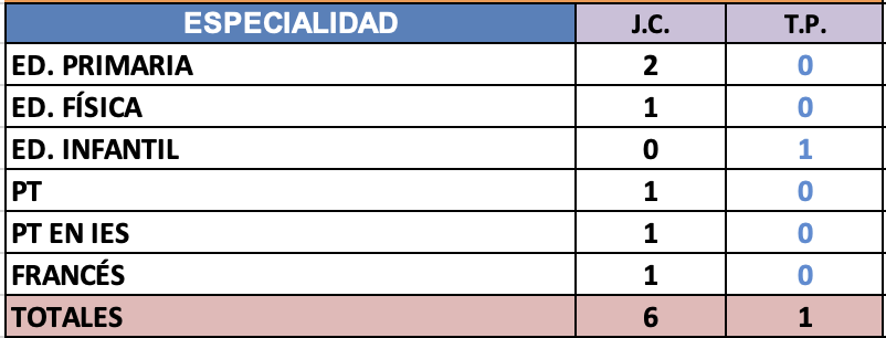 PRIMARIA - Vacantes de Plantilla: