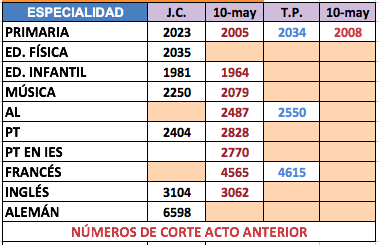 Acto de adjudicación de interinos de Primaria del 16 de mayo