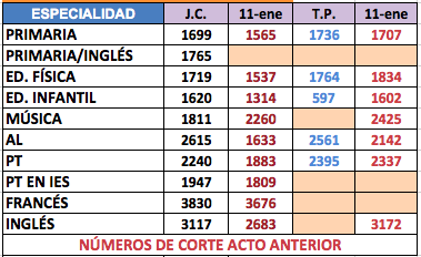 Acto de adjudicación de interinos de Primaria del 17 de enero