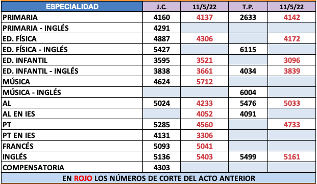 Acto de adjudicación de interinos de Primaria del 17 de mayo
