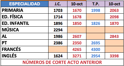 Acto de adjudicación de interinos de Primaria del 17 de octubre