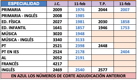 Acto de adjudicación de interinos de Primaria del 18 de febrero