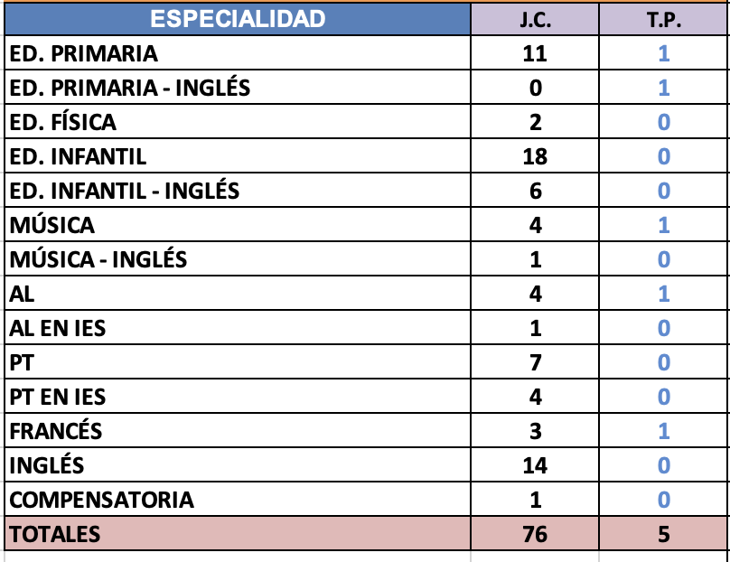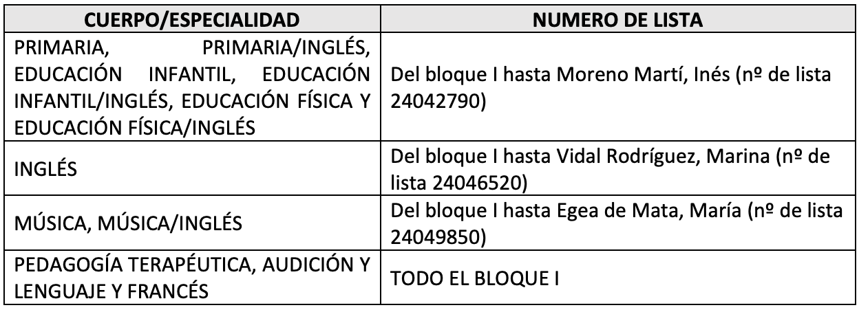 Acto de adjudicación de interinos de Primaria del 18 de noviembre