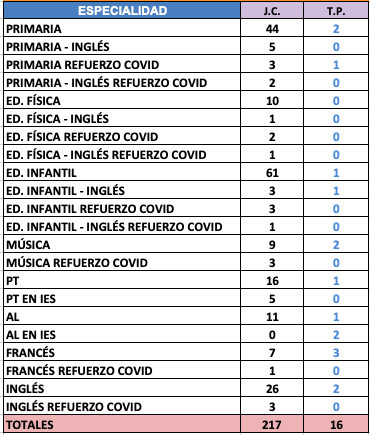 Acto de adjudicación de interinos de Primaria del 19 de enero