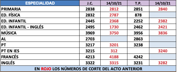 Acto de adjudicación de interinos de Primaria del 19 octubre