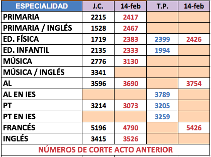 Acto de adjudicación de interinos de Primaria del 20 de febrero