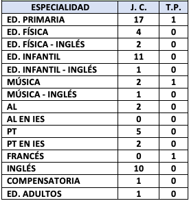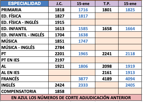 Acto de adjudicación de interinos de Primaria del 21 de enero