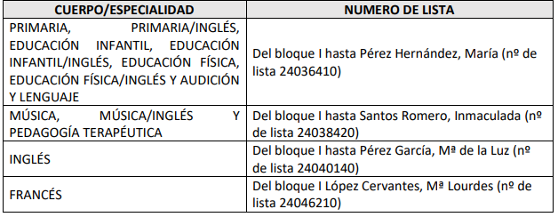 Acto de adjudicación de interinos de Secundaria del 14 de octubre