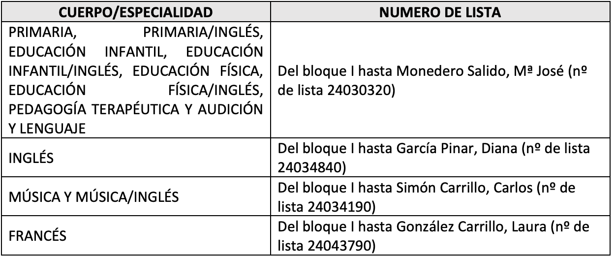 Acto de adjudicación de interinos de Primaria del 22 de octubre