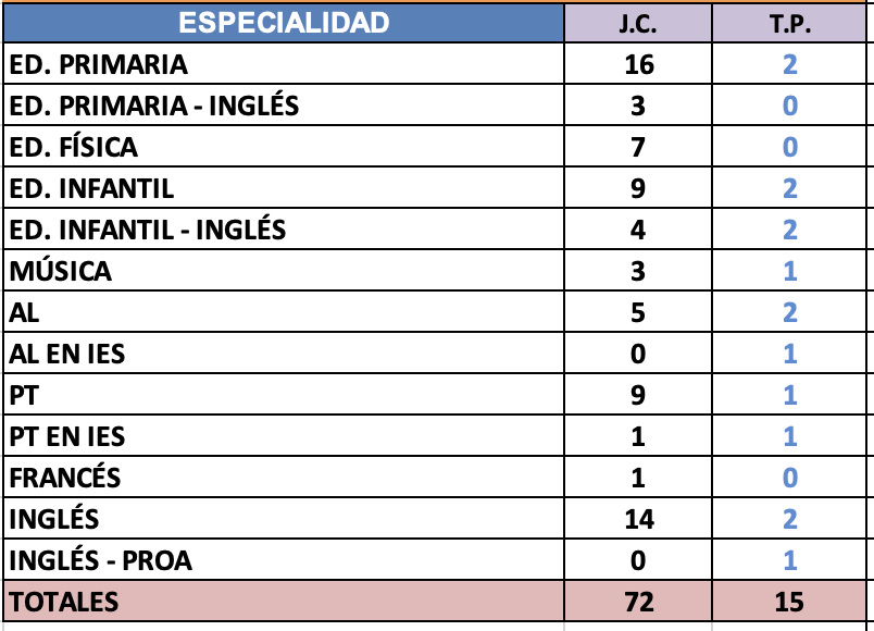 Acto de adjudicación de interinos de Primaria del 23 de abril