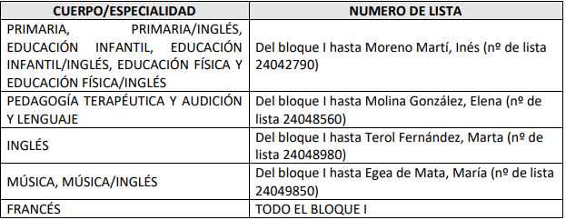Acto de adjudicación de interinos de Primaria del 25 de noviembre