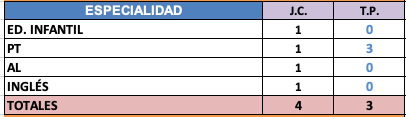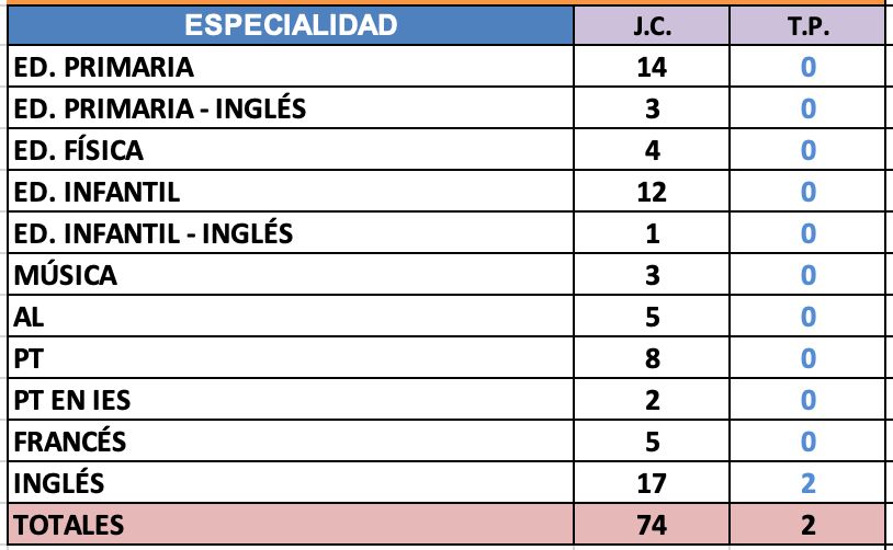 PRIMARIA - Vacantes de Plantilla: