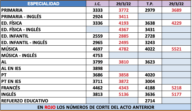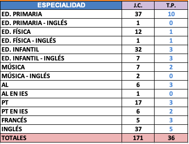 Acto de adjudicación de interinos de Primaria del 26 de abril