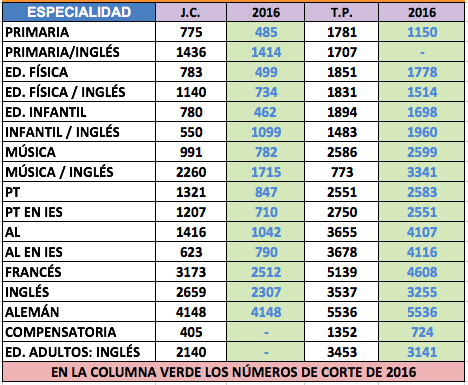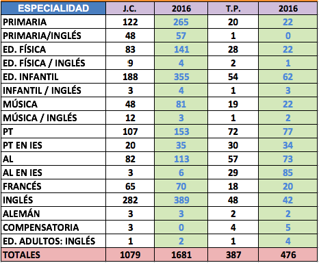 Este año se han separado a los funcionarios de los interinos a la hora de realizar los actos de adjudicación. Por ello las vacantes ofertadas son inferiores en número a las del año pasado ya que en 2016 se ofertaban también las de los funcionarios que participaban en la misma adjudicación.