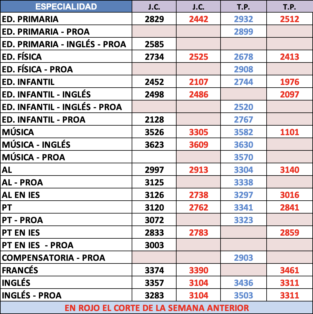 PRIMARIA - Números de corte DEFINITIVOS: