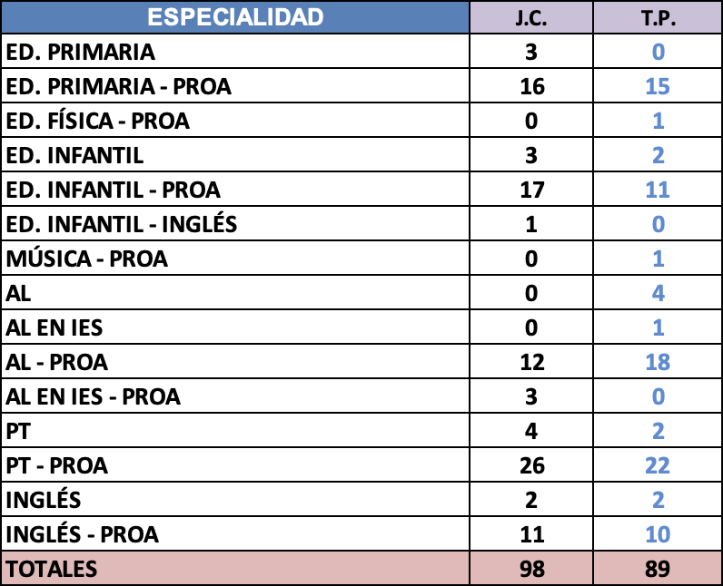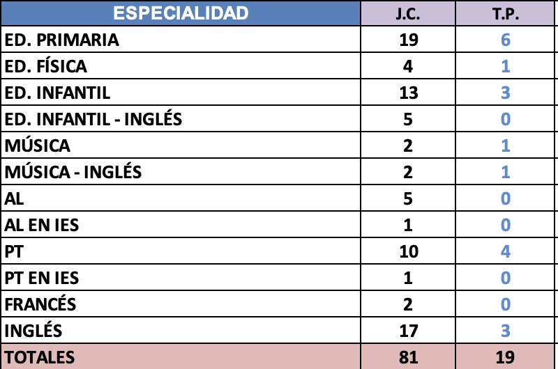 PRIMARIA - Vacantes de Plantilla:
