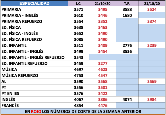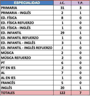 Acto de adjudicación de interinos de Primaria del 27 de octubre