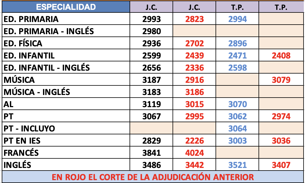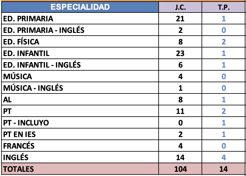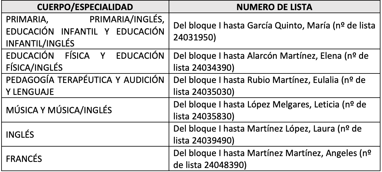 Acto de adjudicación de interinos de Primaria del 28 de enero