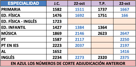 Acto de adjudicación de interinos de Primaria del 29 de octubre