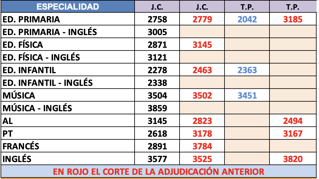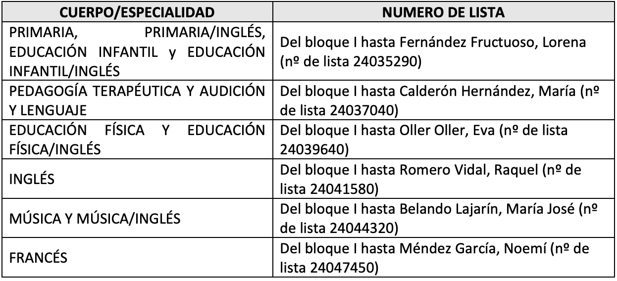Acto de adjudicación de interinos de Primaria del 3 de junio