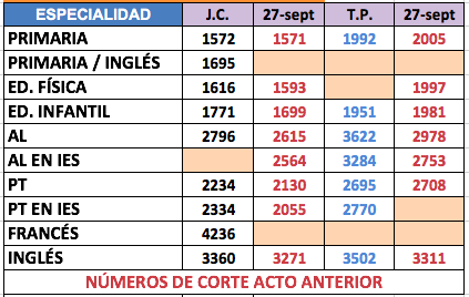 Acto de adjudicación de interinos de Primaria del 3 de octubre