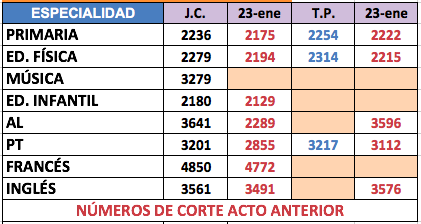 Acto de adjudicación de interinos de Primaria del 30 de enero