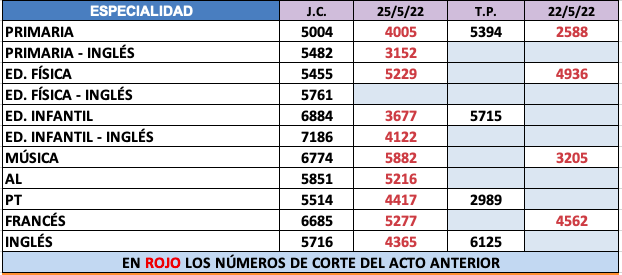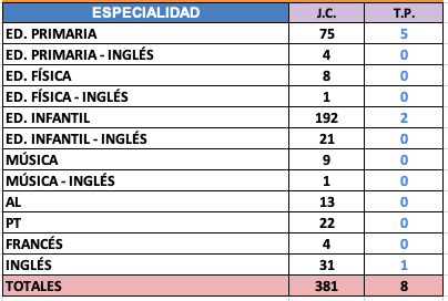Acto de adjudicación de interinos de Primaria del 31 de mayo