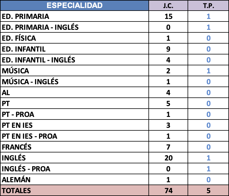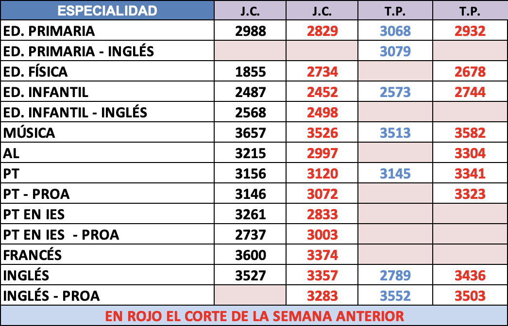 Acto de adjudicación de interinos de Primaria del 4 de octubre
