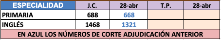 Acto de adjudicación de interinos de Primaria del 5 de mayo