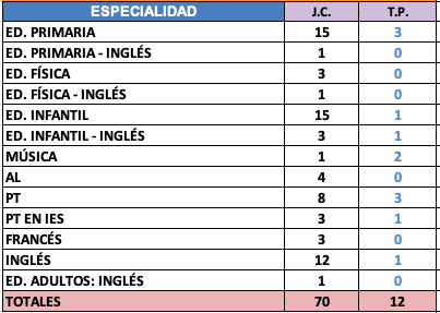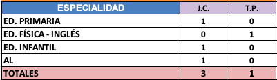 PRIMARIA - Vacantes de Plantilla: