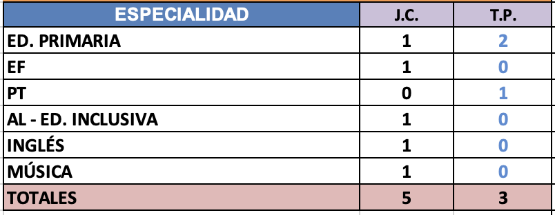 Acto de adjudicación de interinos de Primaria del 6 de febrero