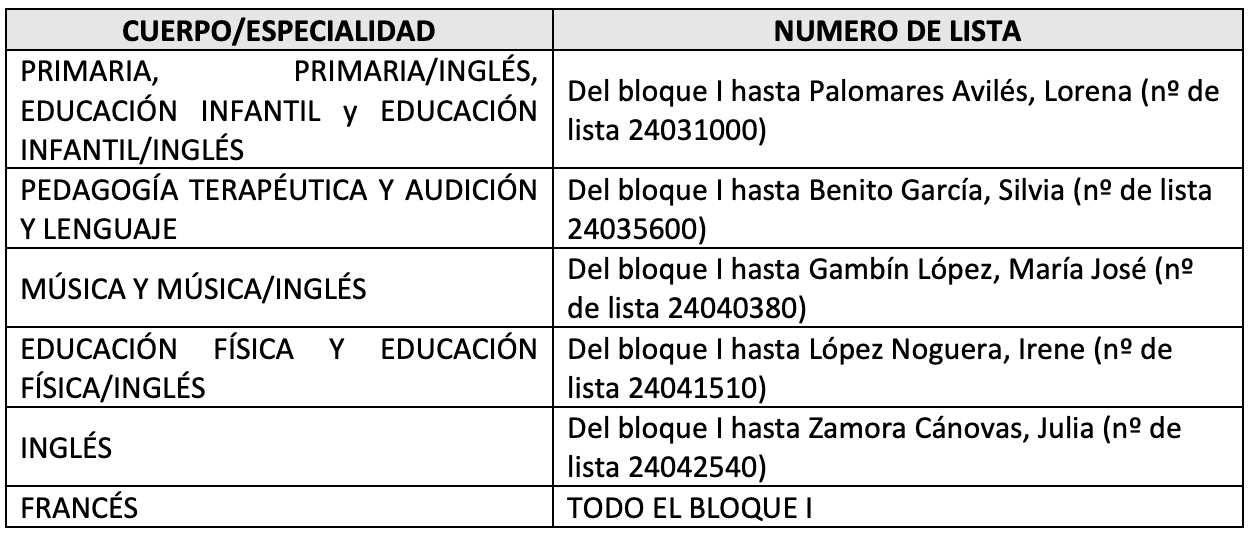 Acto de adjudicación de interinos de Primaria del 6 de mayo