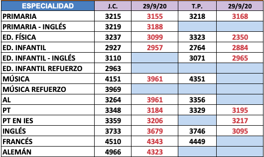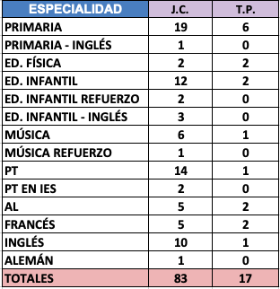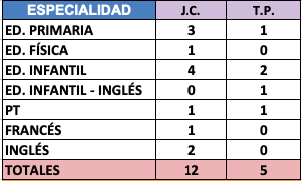 PRIMARIA - Vacantes de Plantilla: