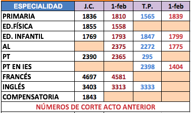 Acto de adjudicación de interinos de Primaria del 7 de febrero