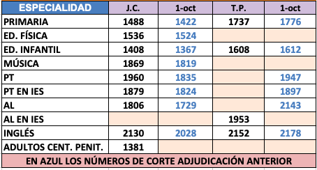 Acto de adjudicación de interinos de Secundaria del 14 de octubre