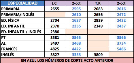 Acto de adjudicación de interinos de Primaria del 9 de octubre
