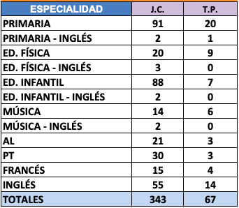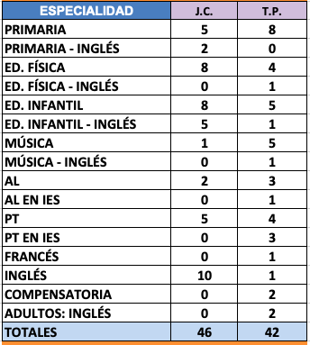 PRIMARIA - Vacantes de Plantilla: