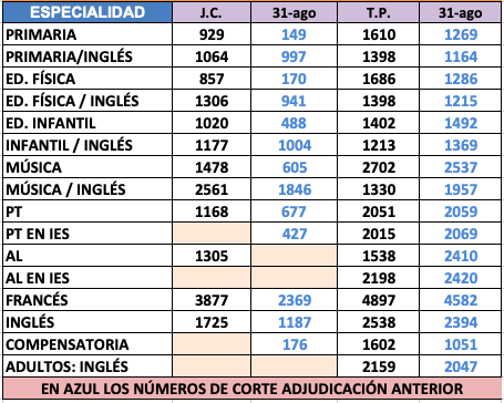 Acto de adjudicación de interinos de Primaria del 9 de septiembre