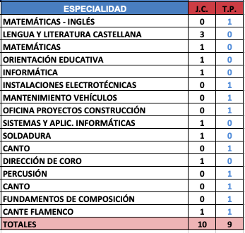 SECUNDARIA - Vacantes de Plantilla: