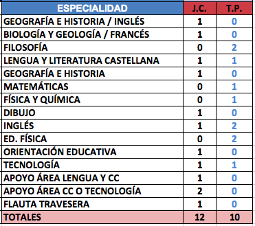 SECUNDARIA - Vacantes de Plantilla: